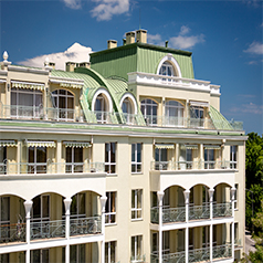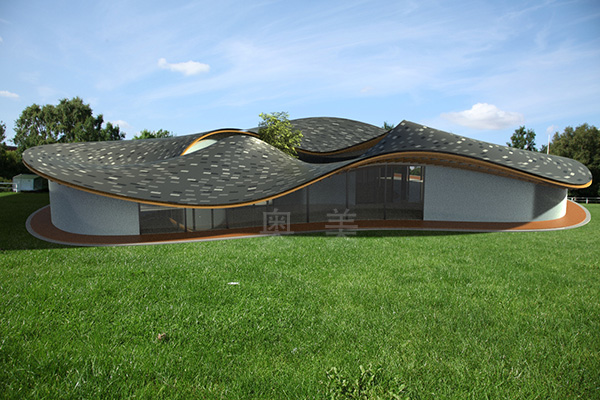 此為中東歐商務(wù)中心項(xiàng)目,此屋面系統(tǒng)采用的是新型建筑材料金屬復(fù)合瓦鋪設(shè)...